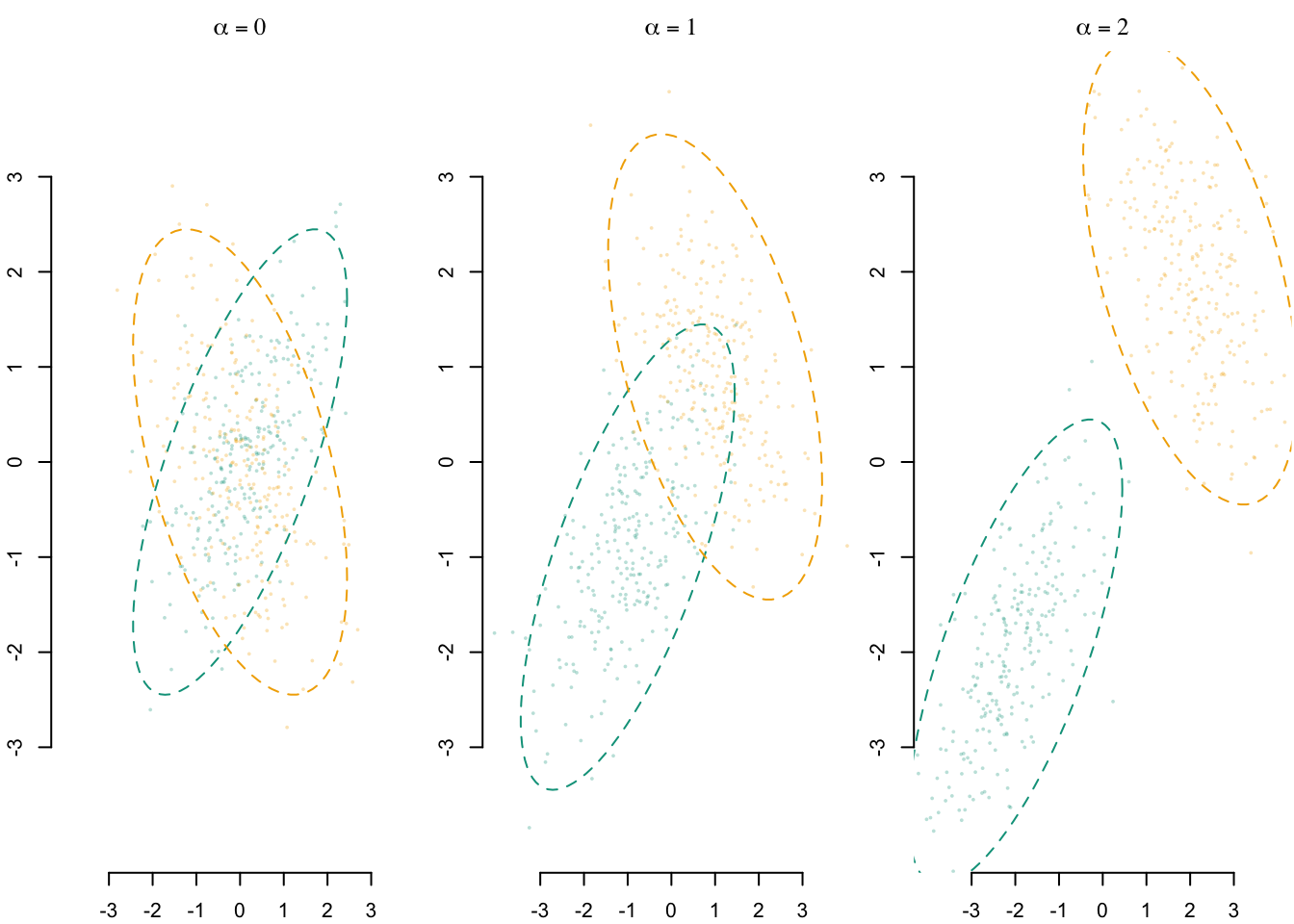 X1 <- rmnorm(n1, mean = a * Mu1, varcov = Sig1)